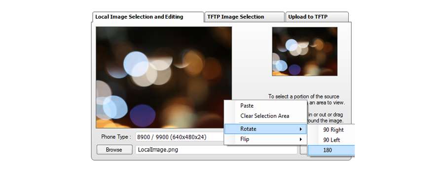 A built in image editing interface allows you to crop, zoom, flip and rotate any image to the correct dimensions for the various phone models. The editor also converts images to the correct size and format to be deployed to the phones.